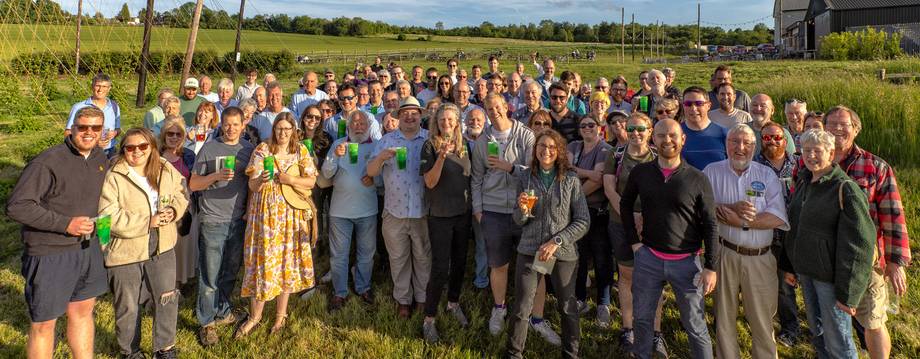“We've got a group of about 80 volunteers called The Hogs Back Hoppers. This started during the pandemic when, because of social distancing, people were feeling a little bit isolated,” says Jill. “But, we had the hop garden, so it made perfect sense for people to come along, spread themselves out in the eight and a half acres, and meet like minded people while helping out in the hop garden in exchange for some beer. We had people come from all walks of life; former engineers, former brewers, horticulturalists, people with no connection to beer whatsoever, some people who lived just down the road who just wanted to come and help. They all muck in and they drive the tractors, do the picking; even the tough part, when it's cold and wet in February, they're out there. So that's a really brilliant community that we've got there and without its help we wouldn't be able to grow our own hops.”